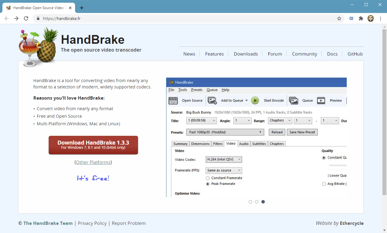 - Go to https://handbrake.fr/ and download the appropriate version of the application.